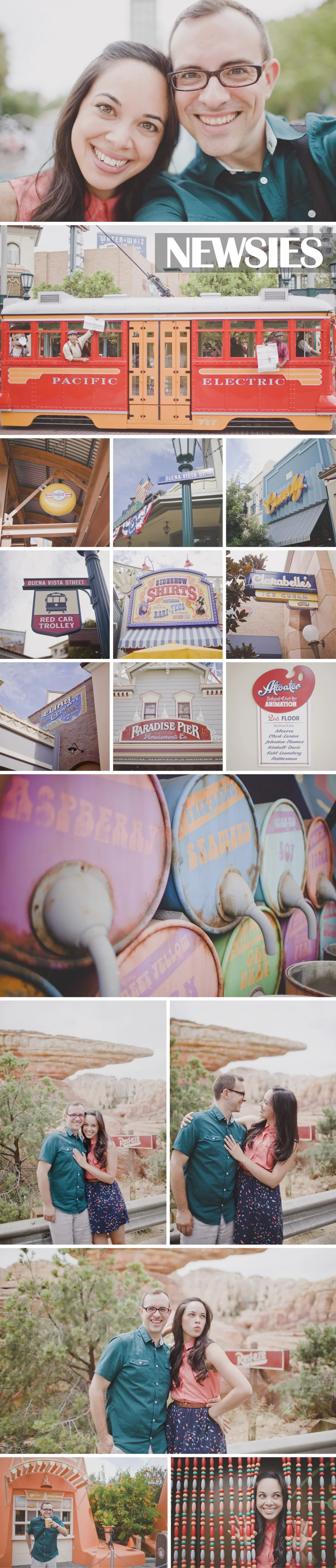 Happy Summer one and all! We have arrived home safe and sound after a whirlwind week of travel, work and play. I have found that photo-journaling is very therapeutic for me. I love to put together a little something with images that help me remember some of our great adventures (modern scrapbooking I suppose) and so I intend to carry on doing just that amidst the posts of other wonderful people that I photograph. Things have been pretty nutty butter lately so a soothing drive through the mountains up to Osoyoos was just what the doctor ordered. We stopped at some sweet orchards along the way, and stumbled on a ranch where the ranch-lady (queen of the ranch?) warmly welcomed us in and encouraged us to hug the horses- yes please! Our destination was the beautiful Spirit Ridge Vineyard where we photographed A + J's wedding. It was a special day filled with lots of love and toasty 40 degree heat. 24 hours following our arrival, after the cake was cut and the flash mob (yes flash mob) had settled, we packed up the car and drove through the night to catch a plane to Los Angeles and SIGGRAPH where Colin led a discussion on educating the next generation of amazing animation artists. I'm so proud of him and could definitely get used to tagging along on business trips. We didn't get to explore too much of the city itself - but for the final day of our stay we had our sights set on Disney's California Adventure. If you haven't been to this park since it's complete makeover (or at all for that matter) it is a must see! Our absolute favourite part was Cars Land. Both of us rank 'Cars' as one of our top Pixar movies, and every detail was spot on in recreating 'Radiator Springs'. Well done Imagineers! Something that we really love to do is stay at the park until it closes and enjoy the peace and quiet. We found a bench along Paradise Pier, watched the lights on the ferris wheel change colour, and talked about our trip, the work we had done, and all of the ridiculously tasty food we ate. Until next time, Disney.